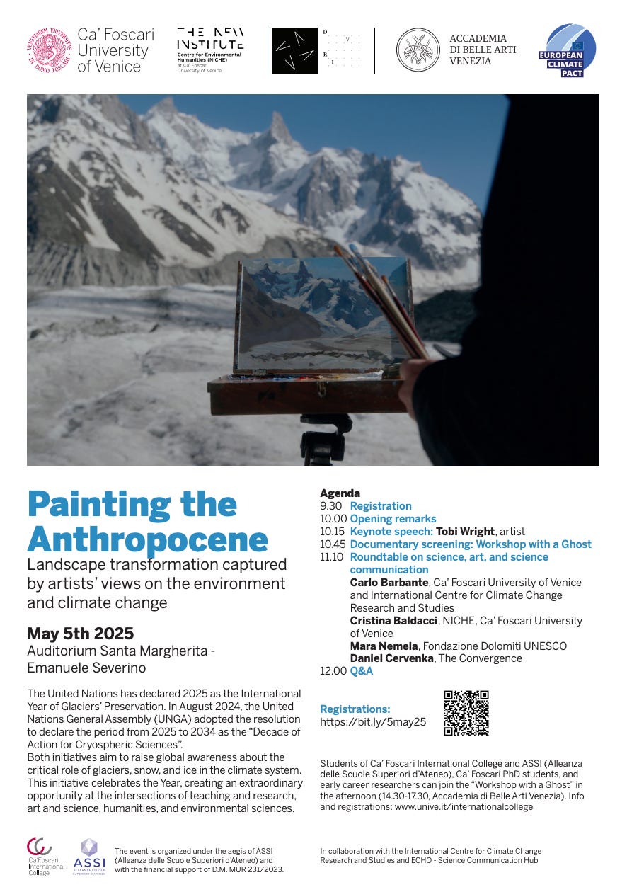 Nel pomeriggio un gruppo di studenti di Ca’ Foscari, Iuav e dell’Accademia di Belle Arti ha partecipato a un workshop itinerante intraprendendo un viaggio immersivo all’insegna dell’esplorazione, della creatività e del dialogo. Utilizzando lo scenario di Venezia come sfondo, gli studenti e studentesse hanno reinterpretato la comunicazione della scienza del clima attraverso il disegno, la pittura e la narrazione, guidati da Toby Wright.