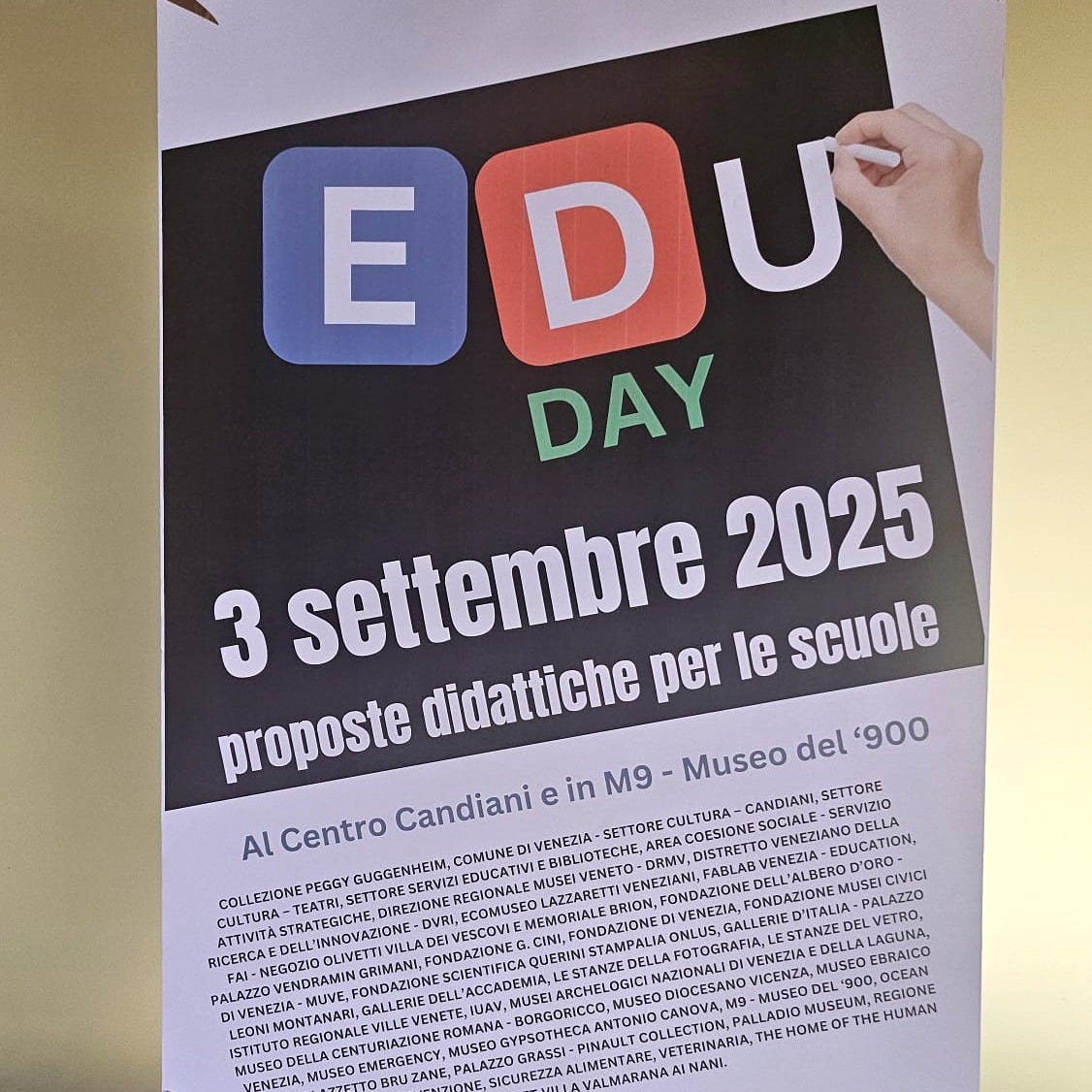 Edu Day è l’appuntamento annuale dedicato all’incontro tra il mondo della scuola e le realtà culturali, scientifiche ed educative del territorio. L’edizione 2025 si è tenuta mercoledì 3 settembre, dalle 14:00 alle 18:00, presso il Chiostro M9 e il Centro Culturale Candiani a Mestre.