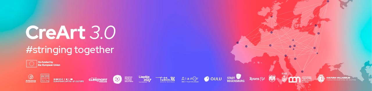 CreArt 3.0 è un progetto finanziato nell’ambito del programma Europa Creativa grazie al quale 13 città europee sono coinvolte nello scambio di esperienze e buone pratiche per promuovere l’arte contemporanea in tutte le sue forme: visiva, performativa e musicale.